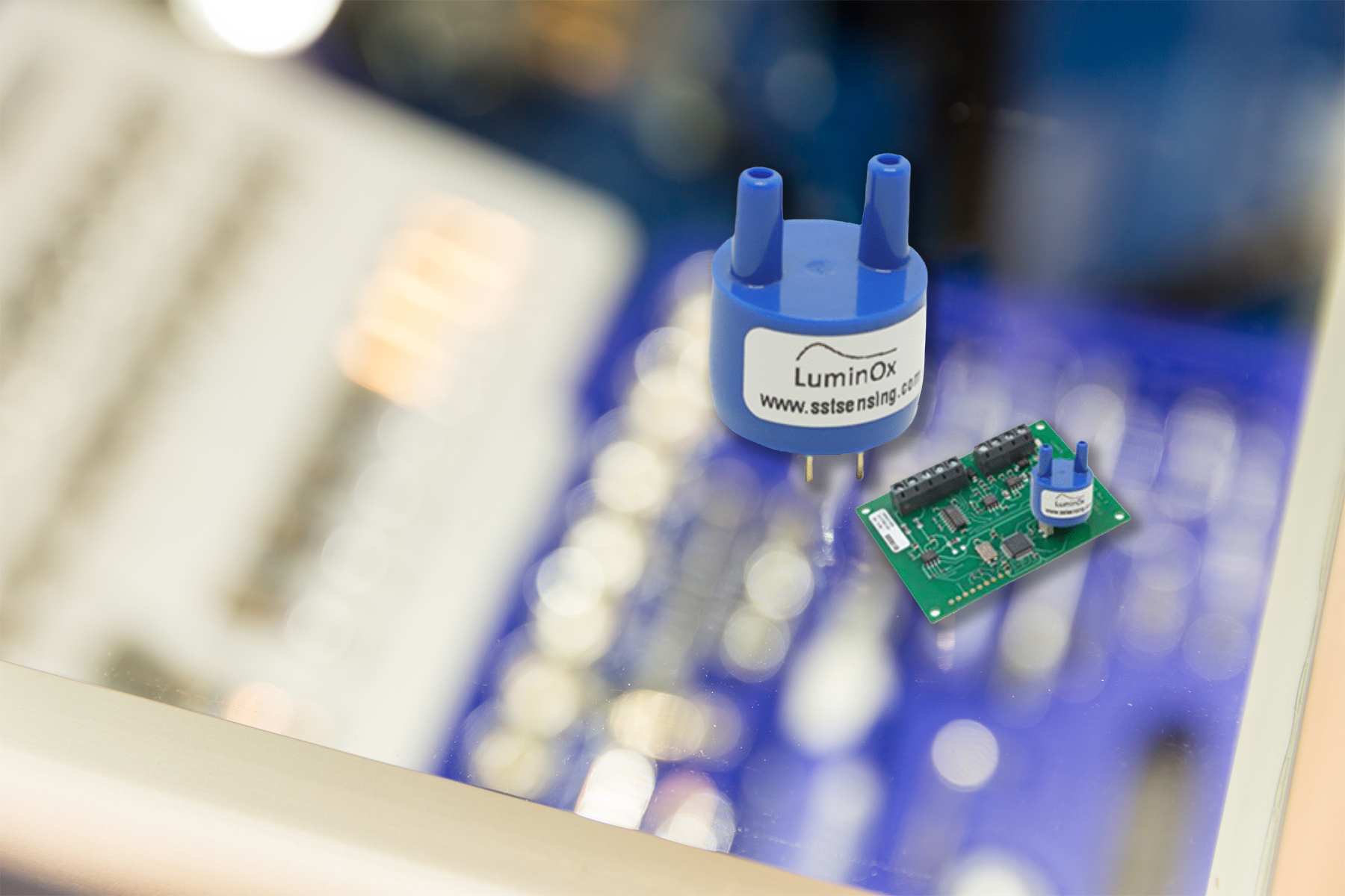 LuminOx is a miniaturised luminescence-based optical oxygen sensor, designed by SST Sensing Limited. LuminOx works on the principle of luminescence, in which an oxygen-sensitive luminescent dye (luminophore) absorbs light from an excitation source, such as a light-emitting diode (LED), and transfers electrons to an excited state. In the excited state, electrons rapidly lose energy when transferring back to their ground state, emitting light termed luminescence.
